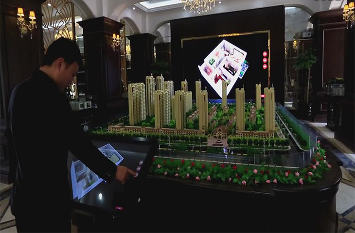 房地產(chǎn)數(shù)字沙盤配備有完整的數(shù)字多媒體系統(tǒng),包括有互動(dòng)系統(tǒng)、燈光控制系統(tǒng)、多媒體設(shè)備、動(dòng)畫宣傳片等,把樓盤的詳細(xì)信息展現(xiàn)給客戶。如樓盤周邊環(huán)境、景觀、商業(yè)配套等,利用數(shù)字技術(shù)把更真實(shí)的場景展現(xiàn)給客戶,是一種全新的呈現(xiàn)方式,讓客戶感覺身臨其境,更加人性化,更貼近消費(fèi)者心理。