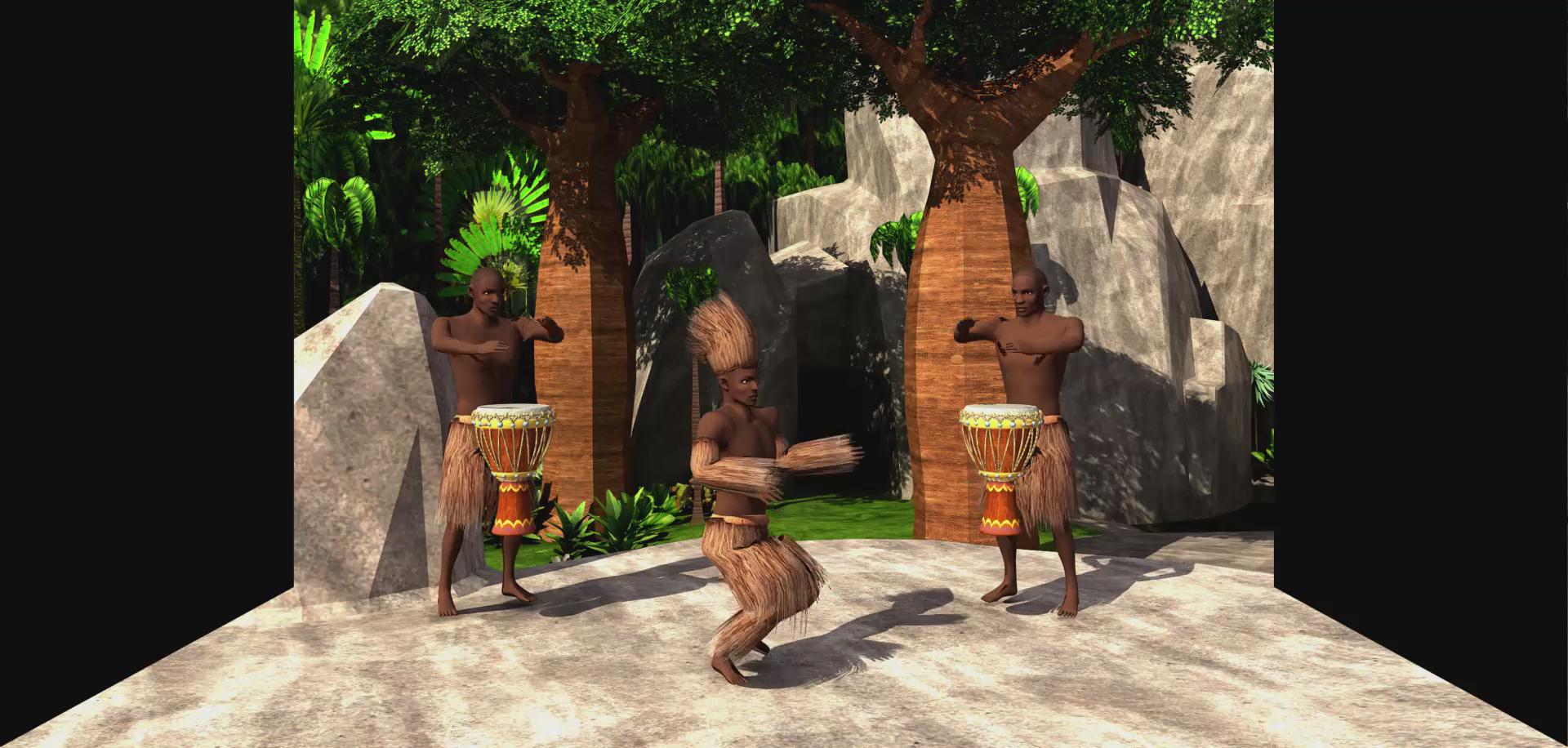 坎科冉是塞內加爾和岡比亞的曼丁人地區的一種成年禮,相當于“卡薩曼斯”(Casamance)。坎科冉儀式主要的特征是:受成年禮者帶著用樹皮和faara樹的紅根須做成的面具,穿著樹葉做成的衣服,用蔬菜漿汁涂畫全身。該影片利用三維動畫形象描述了坎科冉或曼丁成人禮的效果,體現了曼丁的文化特性,立體效果強烈。