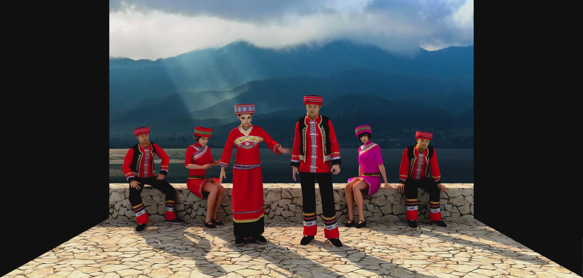 彝族民歌是彝族文化的一個重要載體,它記錄彝民族的歷史、科學、生產(chǎn)生活、傳統(tǒng)習俗、哲理、等豐富多彩的彝族文化。彝族民間有各式各樣的傳統(tǒng)曲調(diào),諸如爬山調(diào)、進門調(diào)、迎客調(diào)、吃酒調(diào)、娶親調(diào)、哭喪調(diào)等。通過三維動畫展示彝族文化的形式,畫面立體感很強,非常吸引人。